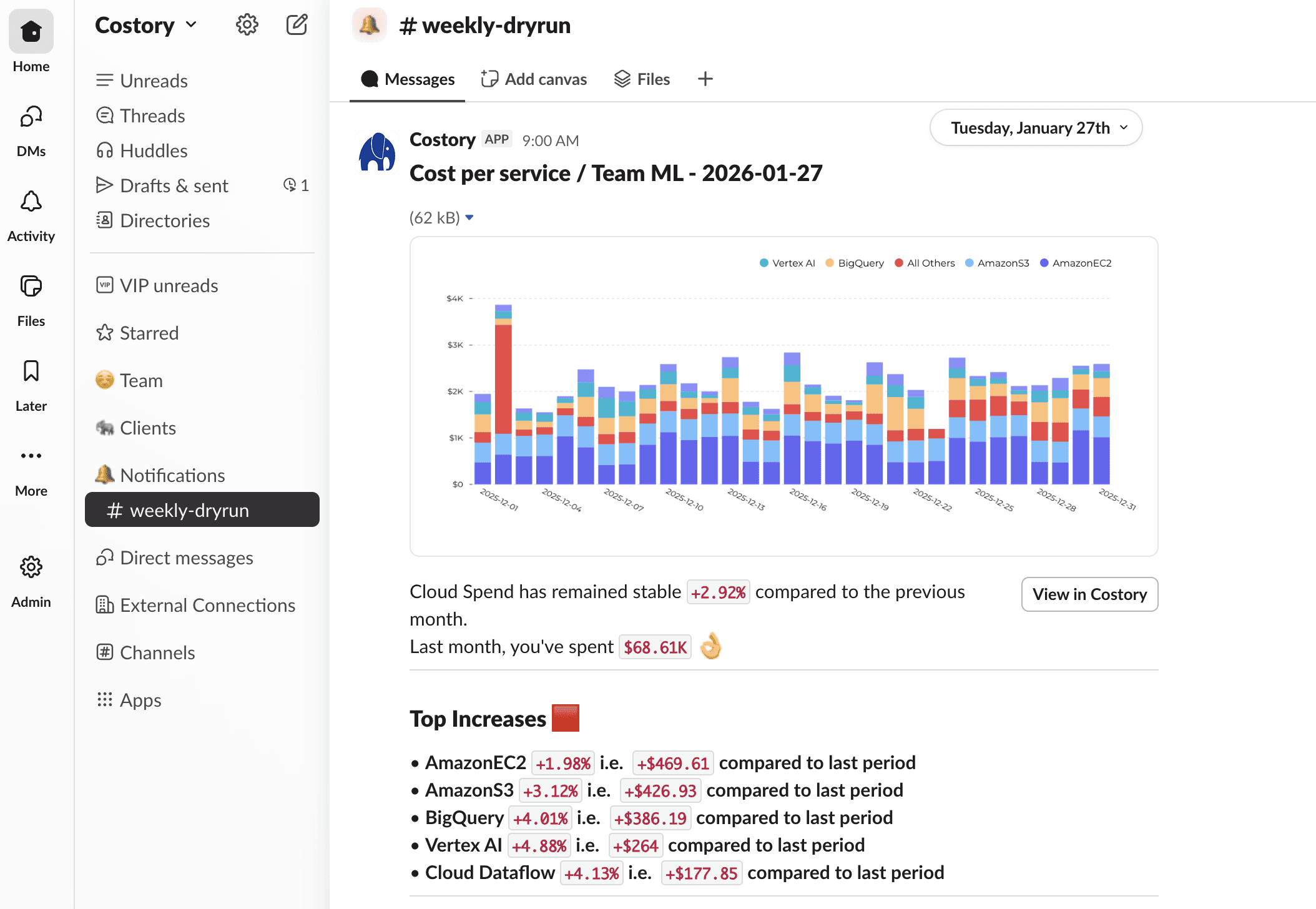 Costory explains your cloud bill and sends it to Slack — for a fair flat fee.